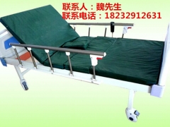 感谢您使用河北滨湖新区盛鑫床上用品厂的产品. (电动康复病床价钱双摇电动护理病床)配有座便功能,给需要长期卧床的人提供了方便。● 可用手持开关任意调节背部上升角度(最大80度)和腿部下降角度(最大100度),脚部床面最低处离地面190MM.● 抬升背部时,腰部有一定角度的倾斜,为防止身体的滑动,采用了约2度的座角.●  采用PP翻动式护栏,还可选择采用铝合金护栏或推拉式护栏.● 足部可以100度弯曲,能够很方便从床上坐起和上下床.● 足部可上升高度比水平位置高120MM.● 采用静音带刹车的万向脚轮,并能进行锁定和解除,耐用性,操作性良,提高了病床搬运的作业性能.● 配有ABS床头板可瞬间拆卸,还可选择采用铁质床头架或真皮软包床头板.● 电动装置采用优质永磁直流全封闭式控制系统,噪音低,安全性高,使用寿命长.● 配有聚脂纤维新材料床垫,还可选择采用低反弹的双层海绵床垫或防水材料床垫,具有良好的透气性和耐用性。    18232912631